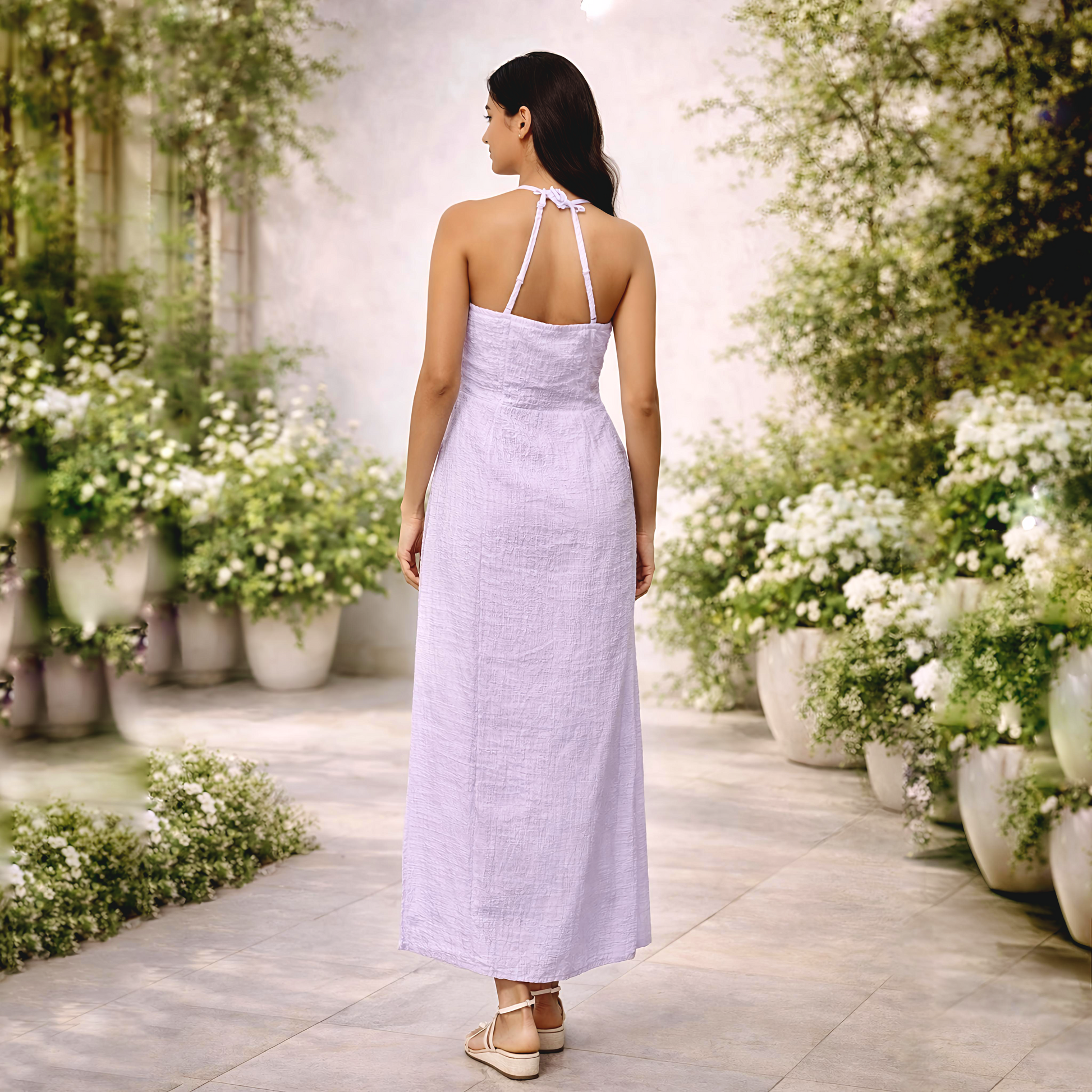 Elevate your everyday elegance with the Elysia Textured Halter Dress, designed for effortless sophistication. Crafted in a soft, textured fabric, this dress features a flattering halter neckline that highlights the shoulders and neckline beautifully. The smooth, flowy silhouette drapes naturally, offering comfort without compromising on style. Perfect for brunch dates, casual outings, or evening get-togethers, this versatile piece pairs seamlessly with minimal accessories and heels for a refined, modern look.